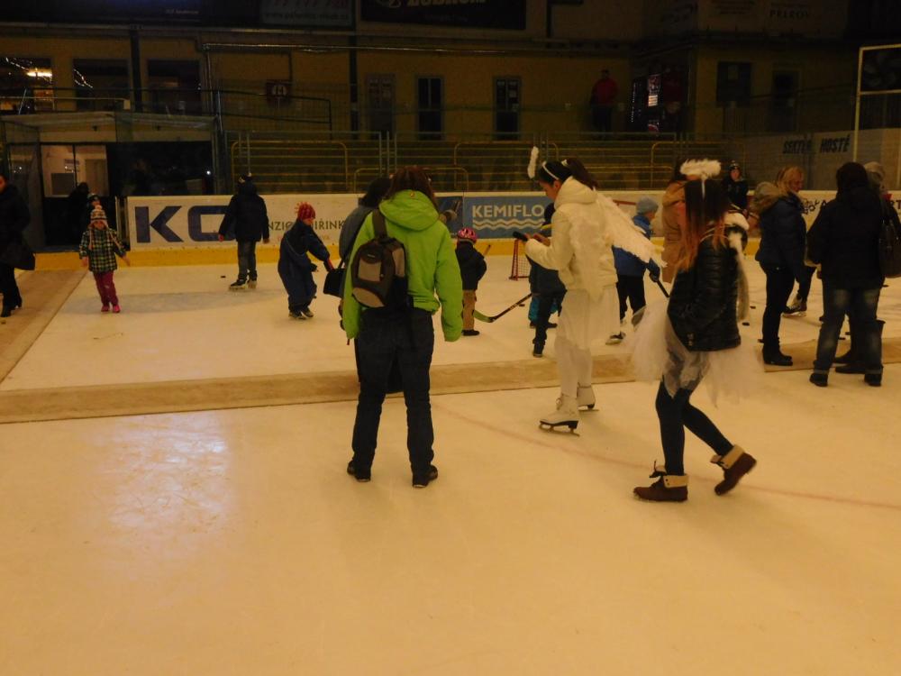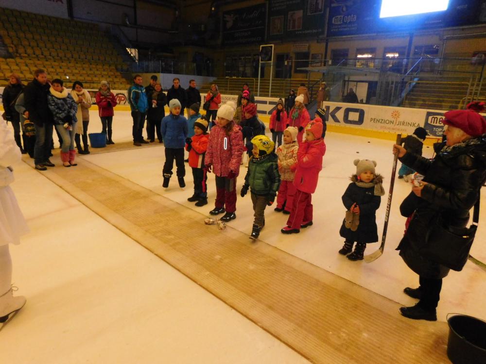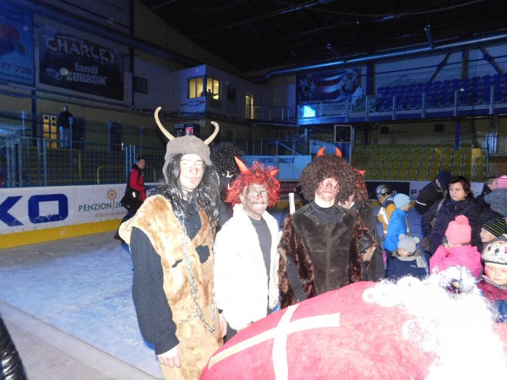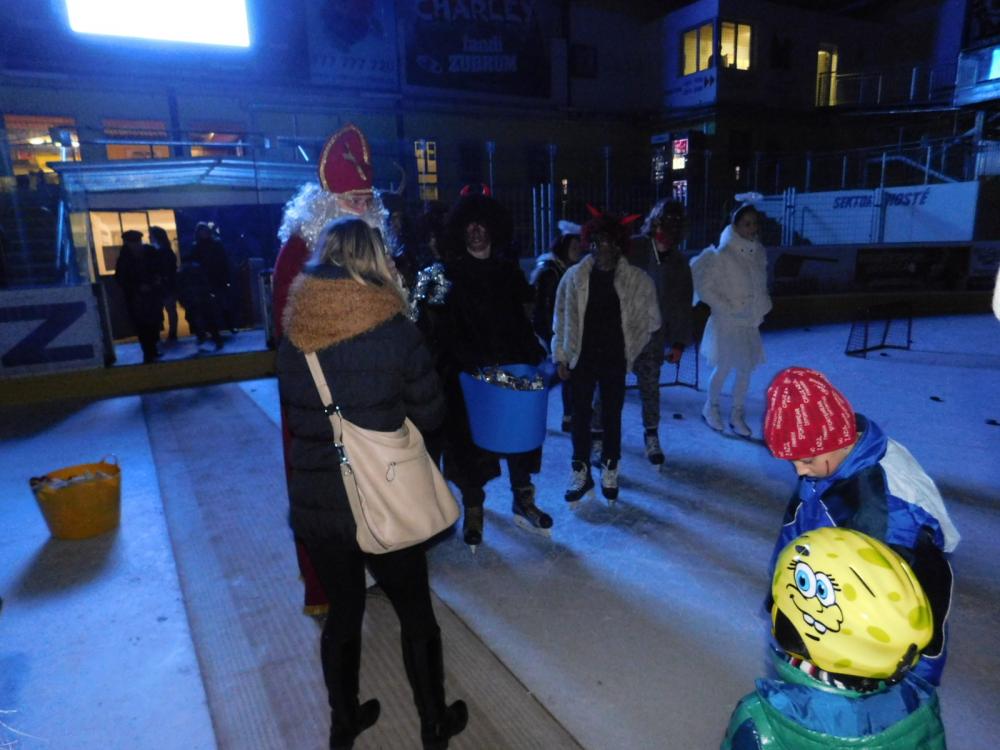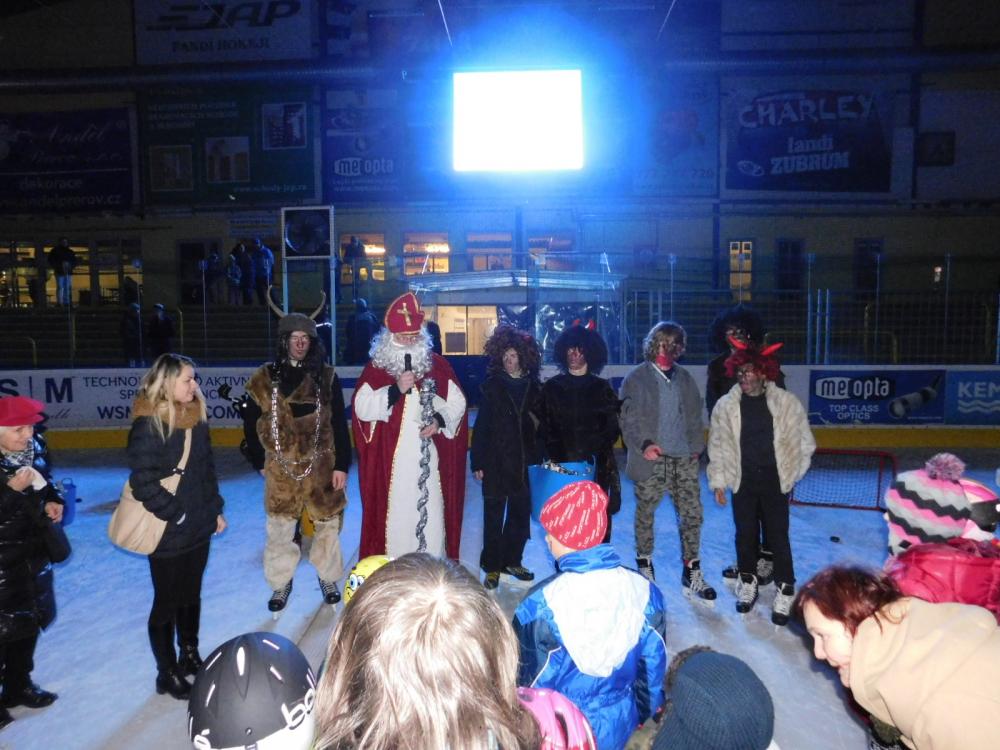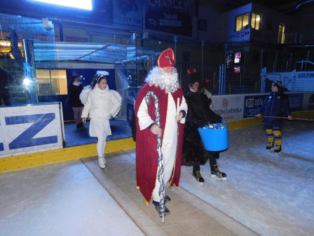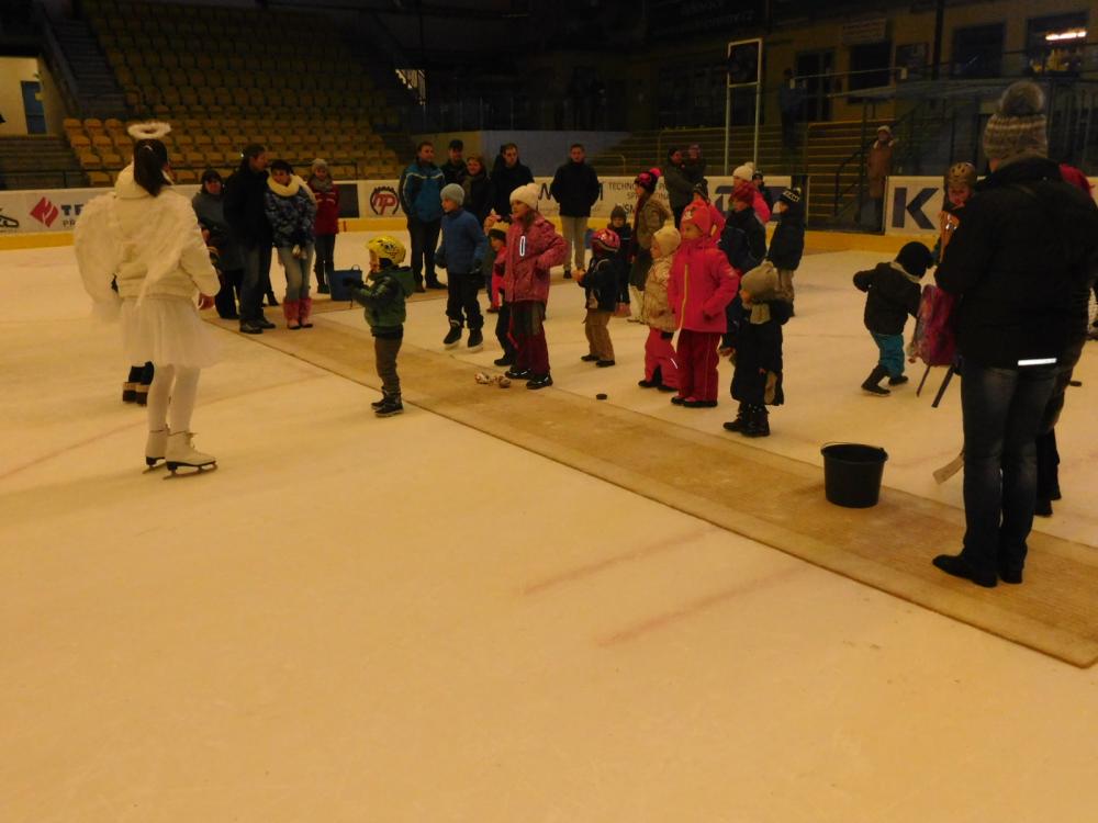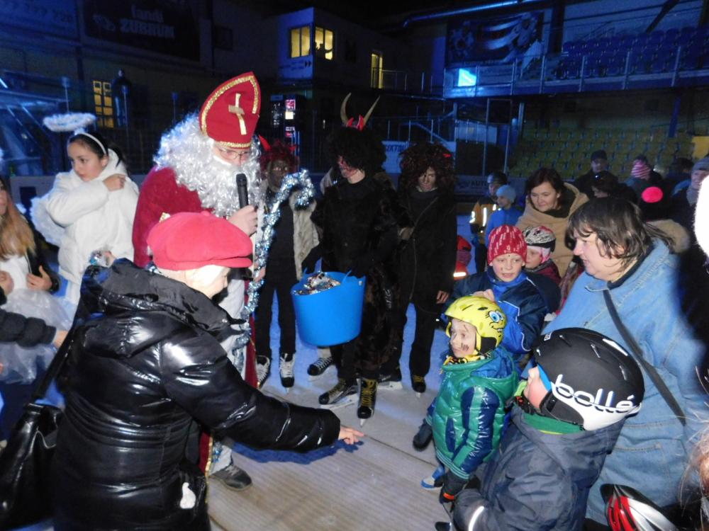 Tak jako každý rok tak i letos přišel Mikuláš na zimní stadion. Nejprve děti museli splnit pekelné zkoušky, které připravili čerti a andělé - střelbu na branku, házení na cíl a projížďku na autíčkách. Pak se objevil Mikuláš, všechny za jejich snahu obdaroval a děti mu za to společně s anděly zatančily.