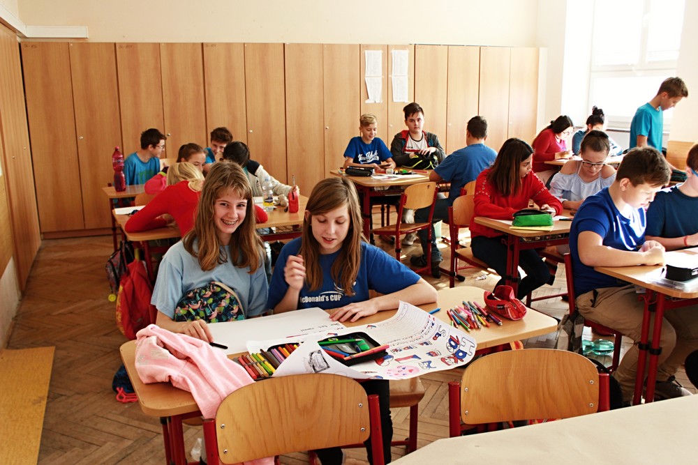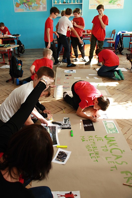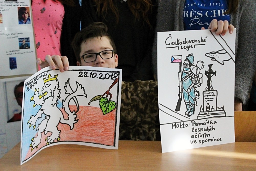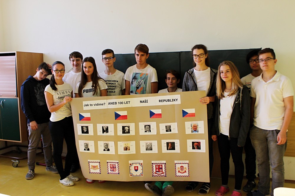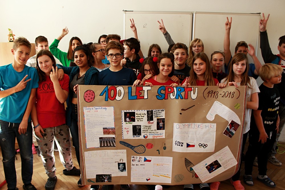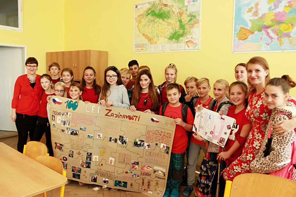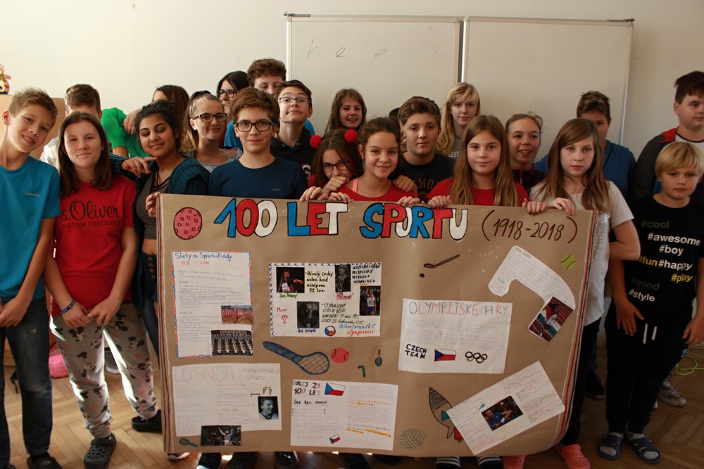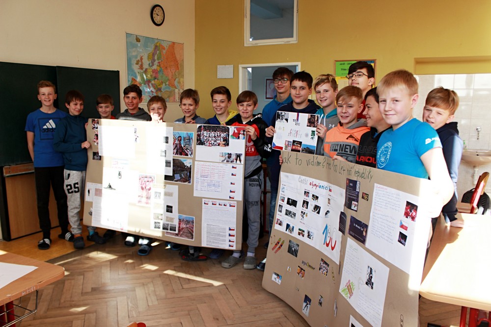 100. výročí vzniku našeho státu zažíváme jen jednou, proto jsme pro žáky 2. stupně připravili projektový den s názvem „Jak to vidíme? Aneb 100. let naší republiky“. Po úvodním projevu pana ředitele a společné fotografii v barvách trikolory se žáci s nadšením pustili do projektů ve svých třídách po jednotlivých ročnících. Žáci dostali za úkol zpracovat zadaná témata od vzniku našeho státu a jeho historie, přes kulturu, sport až po zajímavosti a blíže se tak seznámit s československou a českou historií od roku 1918 po rok 2018. K zadaným projektům měli vytvořit tematické plakáty a logo k výročí republiky. Přestože začátky byly rozpačité, všichni se do práce pustili s chutí a přišli s originálními nápady. Jak jejich snažení dopadlo mohou rodiče a návštěvníci školy zhlédnout a zhodnotit v přízemí školy během následujících týdnů.