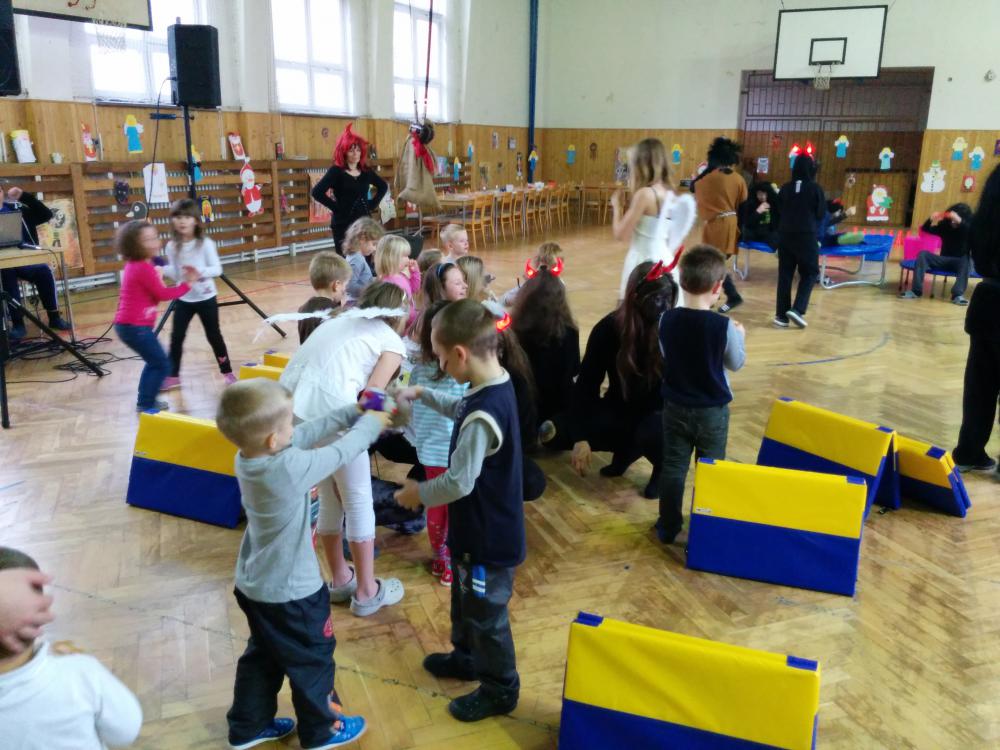 Ve čtvrtek 4.12. naši školu poctilo mnoho vzácných návštěv. Děti z přerovských mateřských škol si k nám přišly pro Mikulášskou nadílku, která byla pro ně připravena krásnými čerticemi, zlobivými čerty, nebeskými anděli a jedinečným Mikulášem. Ale než došlo na přednášení naučených básniček a písniček, měly děti za úkol projít pekelnou uličkou, vyrobit si podobizny jejich hostitelů a zatančit si čertovský taneček. Vše zvládly na jedničku s hvězdičkou.