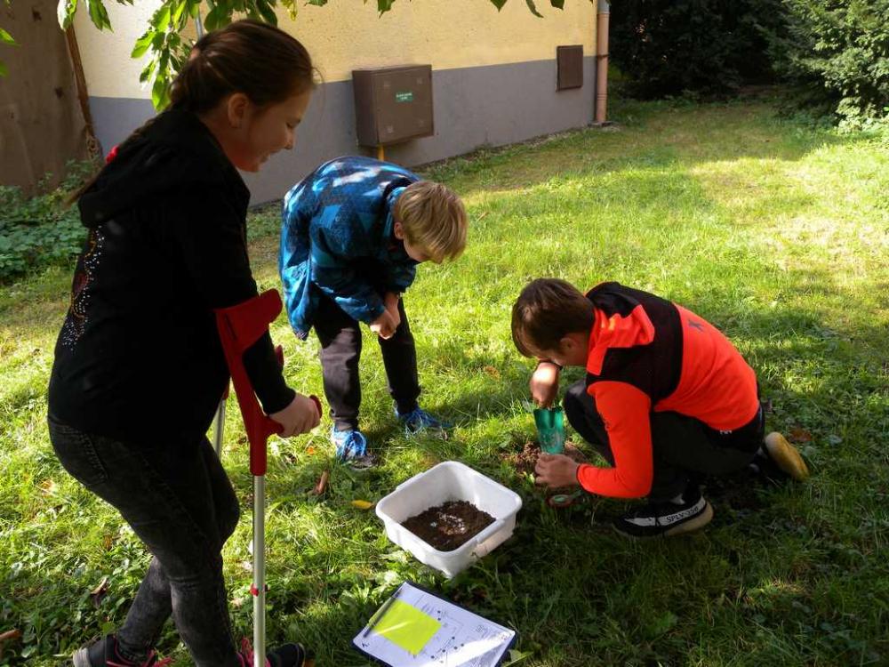 Ááááááááá, chyť tooooo! Ježišmarjáááááá, pavouk! Uííííííííííí ono to leze! A další podobné výkřiky a jeky bylo slyšet v úterý 9. 10. v areálu stanice Bios. To žáci (a hlavně žákyně) dávali hlasitě najevo své úspěchy a lovecké štěstí během programu „Život v půdě“. Počasí bylo báječné, takže různých zástupců členovců i kroužkovců byla spousta. Na závěr si všichni úlovky prohlédli a vypustili zpátky do přírody.