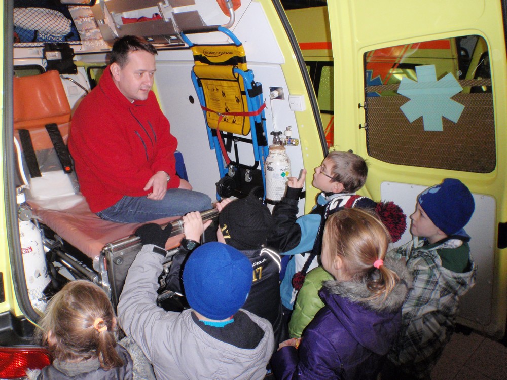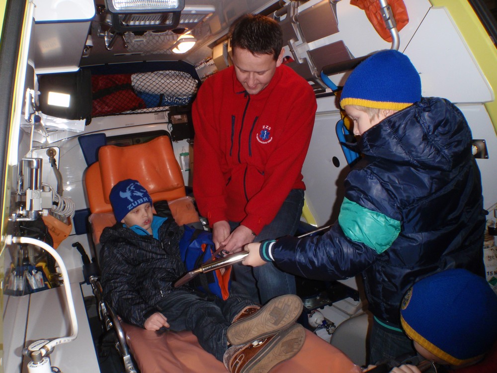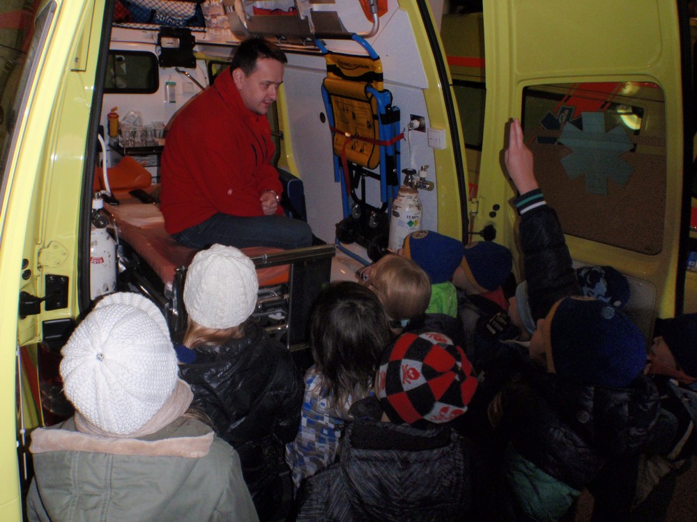 Ve středu 27.11. jsme s dětmi navštívili ZZS – zdravotní záchrannou službu. Měli jsme možnost nahlédnout do útrob sanitního vozu, seznámit se s využitím přístrojů, které denně zachraňují lidské životy, na vlastní kůži si vyzkoušet ošetření zlomeniny, ale hlavně se seznámit s prací samotného záchranáře.