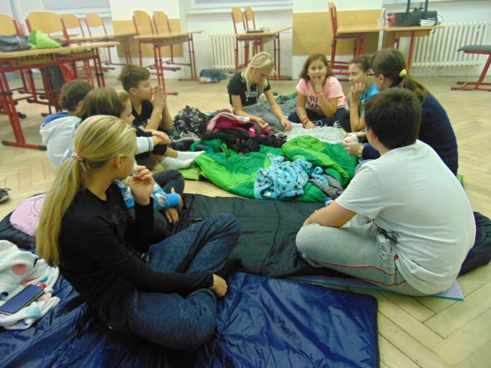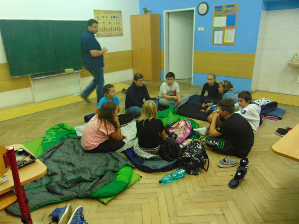 Celé odpoledne i večer jsme sportovali, přemýšleli, hráli společenské hry a dívali na film a někteří se možná i báli, když se v noci procházeli po naší prázdné škole.