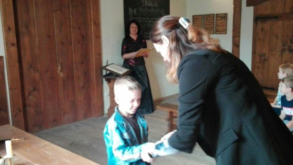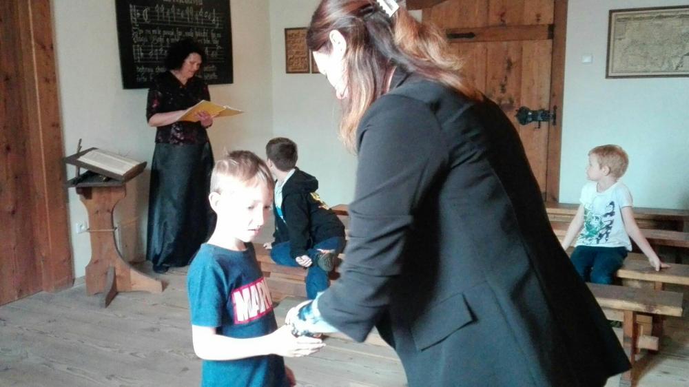 Slavnostní pasování žáků 1.A na čtenáře. Po cestě na přerovský zámek poznávali stromy, keře, kytky i dopravni značky. Přejeme jim hodně přečtených knížek!