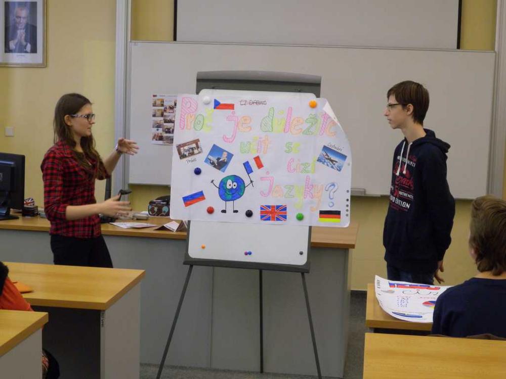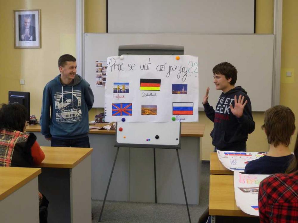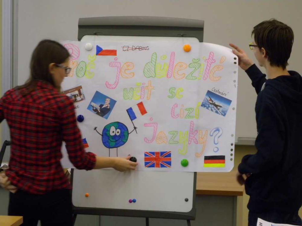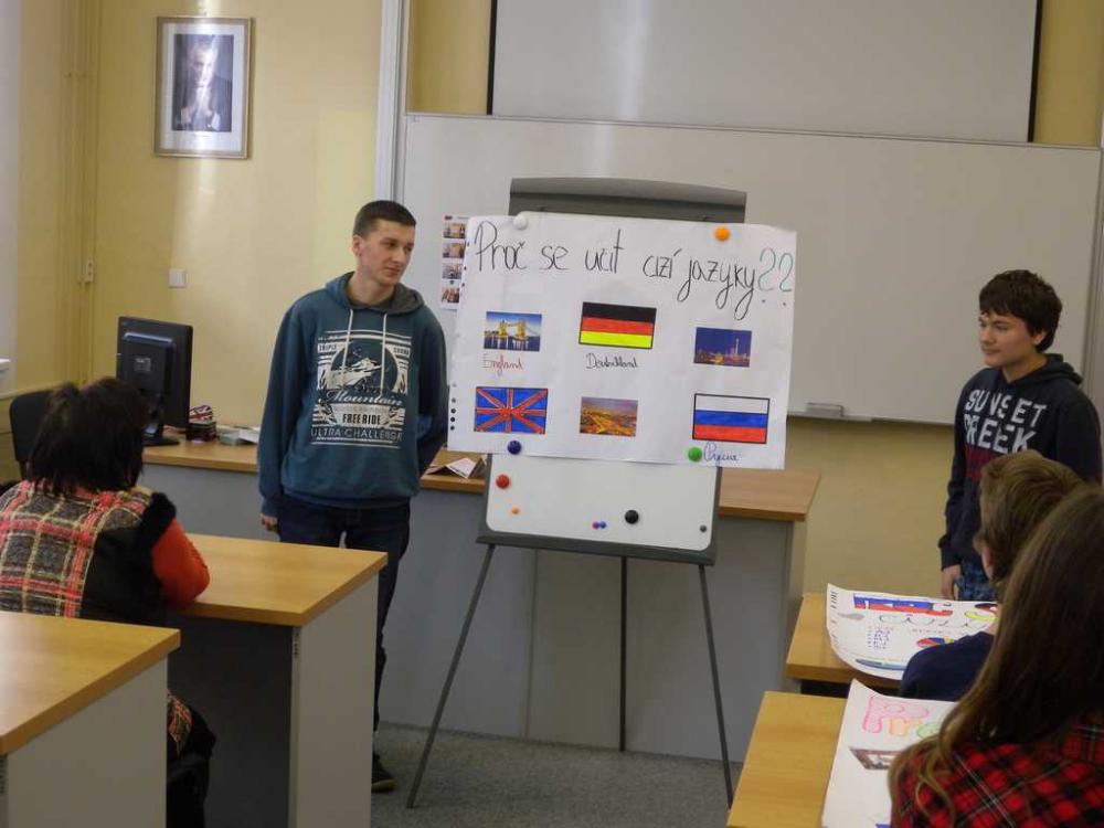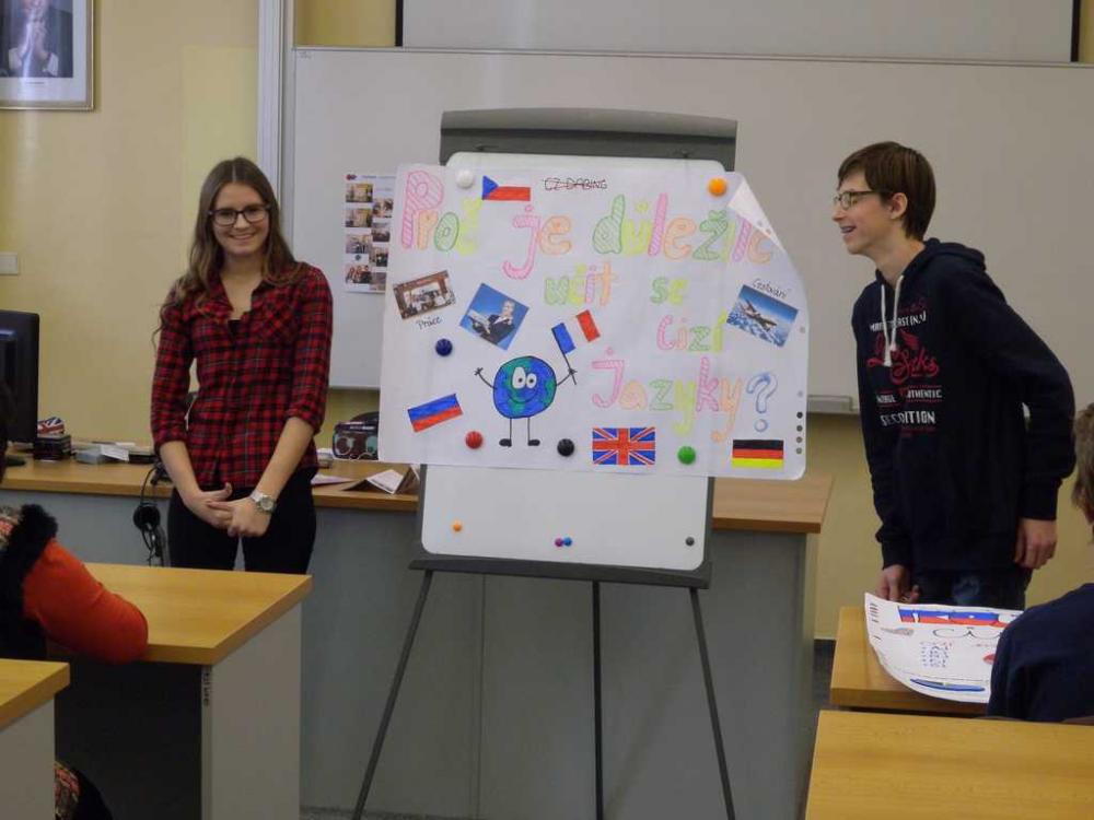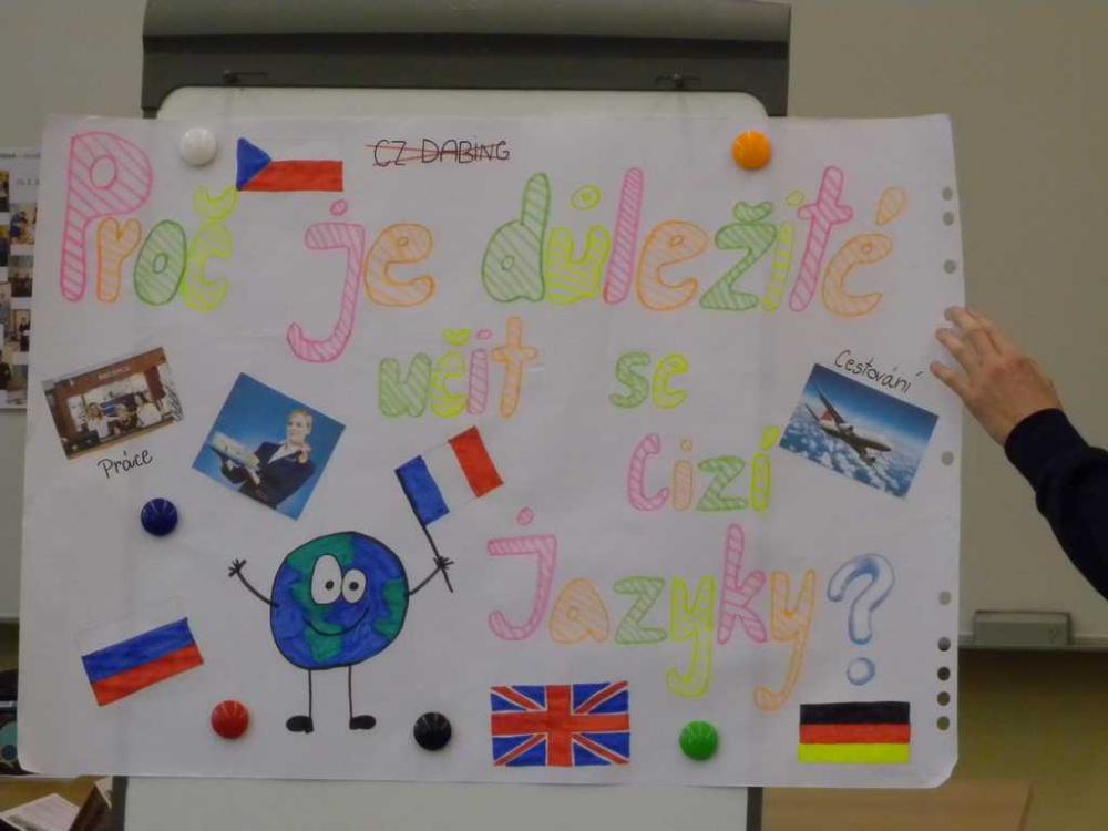 Oba týmy zvládly vytvoření plakátu na téma „Proč je důležité učit se cizí jazyky?“, s trochou trémy, ale s velkou dávkou humoru své dílo žáci odprezentovali a nakonec se všichni zapojili do vědomostního kvízu. A výsledek? MÁME POHÁR A DIPLOMY!!!