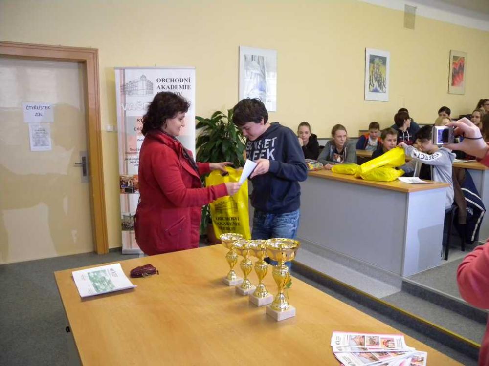 Milovníky originálního českého komiksu zklamu. Tentokrát šlo o soutěž, kterou pro žáky devátých tříd pořádá Obchodní akademie. Za naši školu se zúčastnily dva týmy. Za 9.A bojovali Radim Boháč, Adam Kubíček, Eva Boháčová a Klára Nováková, třídu 9.B reprezentovali Dominik Kuba, Radek Pospíšil, Kateřina Horáková a Dominika Svobodová.