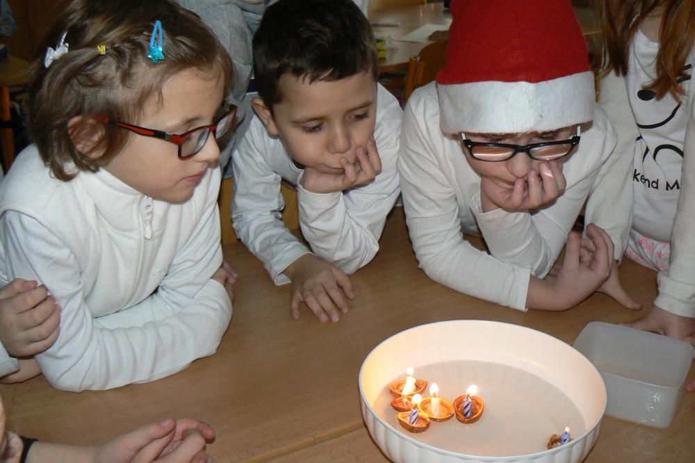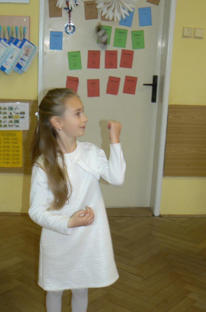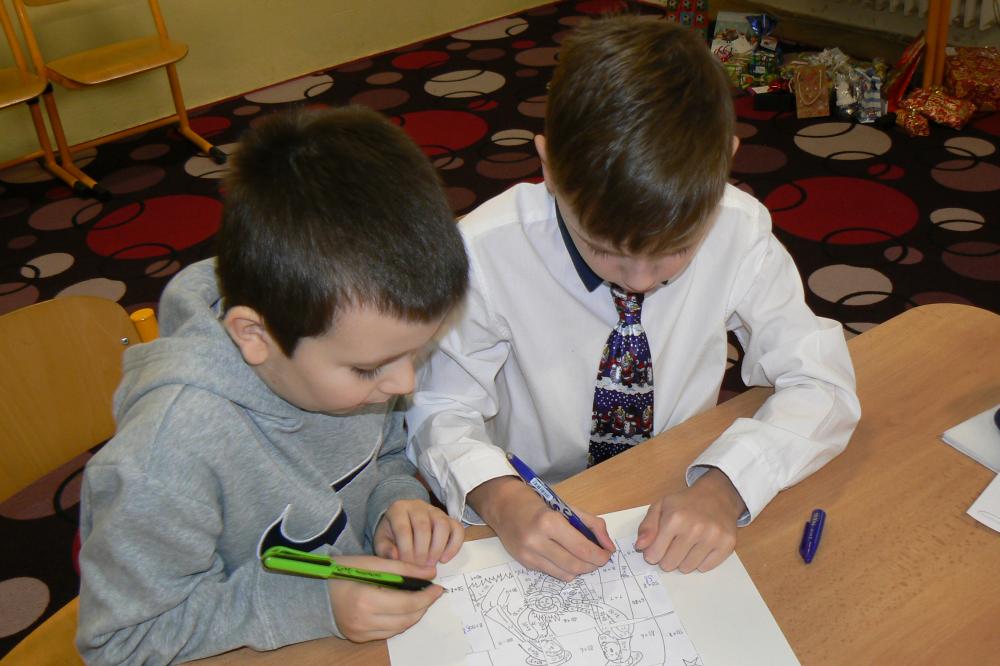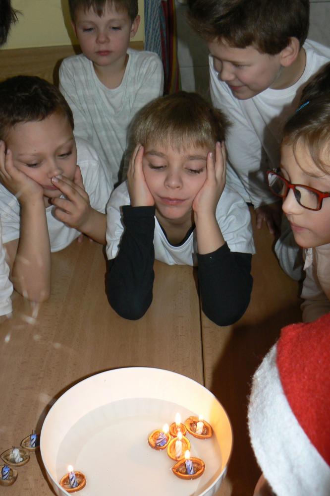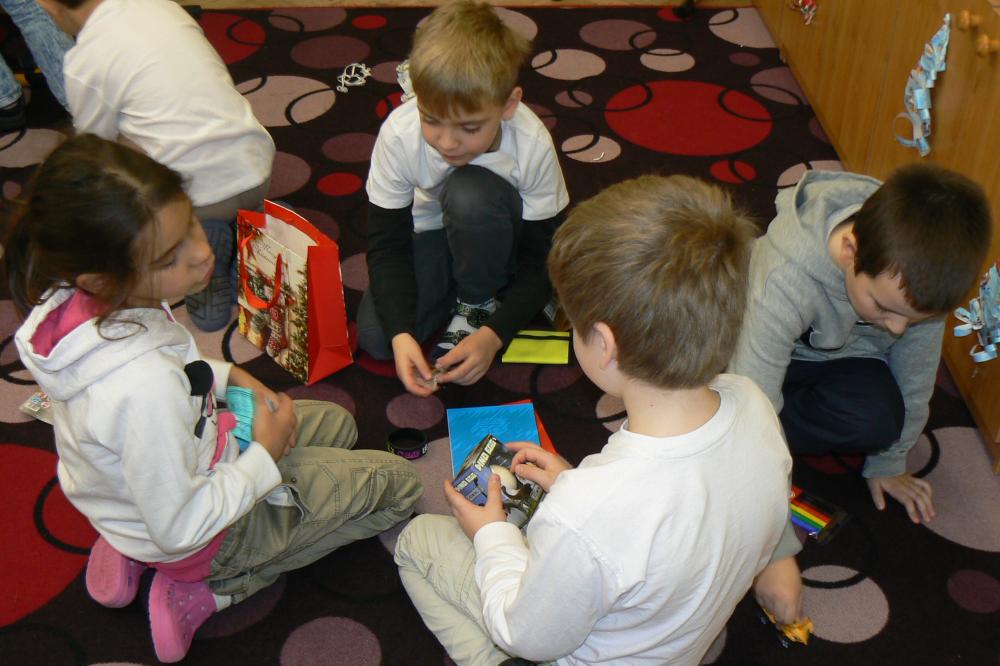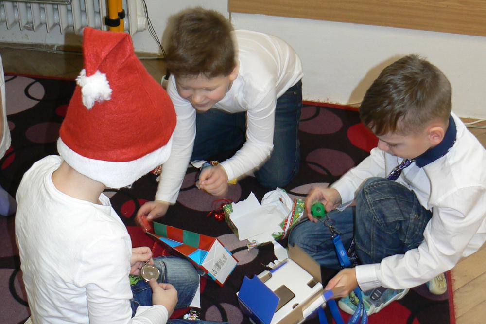 Dnes aktovky zůstaly doma a my přišli do školy v bílém. Přinesli jsme si cukroví a hry. Pracovali jsme ve skupinách, ve kterých jsme tvořili obrázky vztahující se k Vánocům. Čekala nás ochutnávka cukroví, děvčata házela papučí, rozkrojili jsme jablíčko, pouštěli jsme lodičky. Nejkrásnější bylo zpívání koled u stromečku a nadělování dárků. Na závěr jsme si popřáli krásné Vánoce, hodně zdraví a štěstí v novém roce. Třídu jsme pěkně uklidili a spokojeni jsme odcházeli domů.