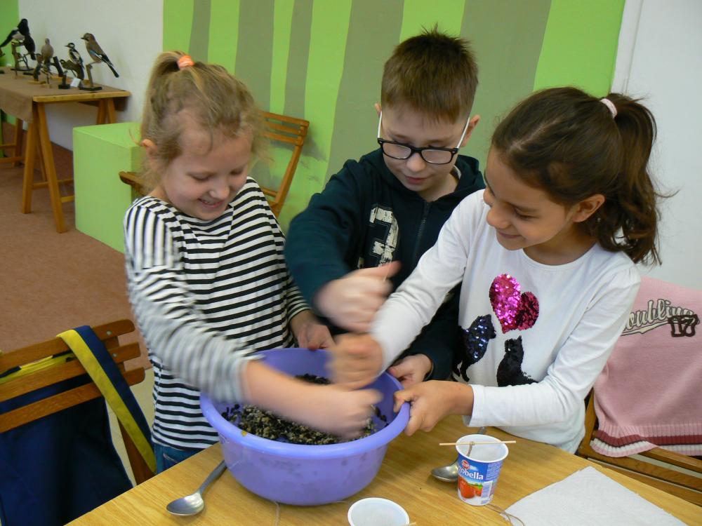 V úterý jsme navštívili Ornitologickou stanici s programem "Zimní ptáci zahrady". Z blízka jsme si prohlédli sýkorky, čížka, brhlíka a dlaska. Na zahradě jsme nasypali do krmítek slunečnicová semínka. V učebně jsme tvořili zvonečky pro ptáčky, které jsme si odnesli domů.