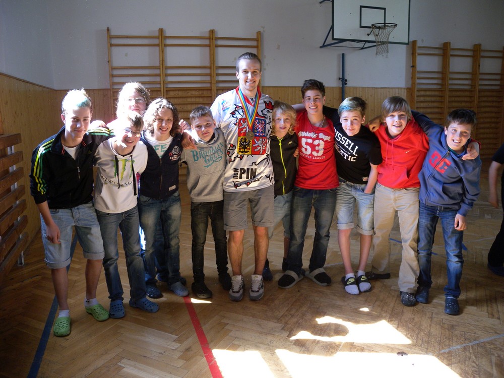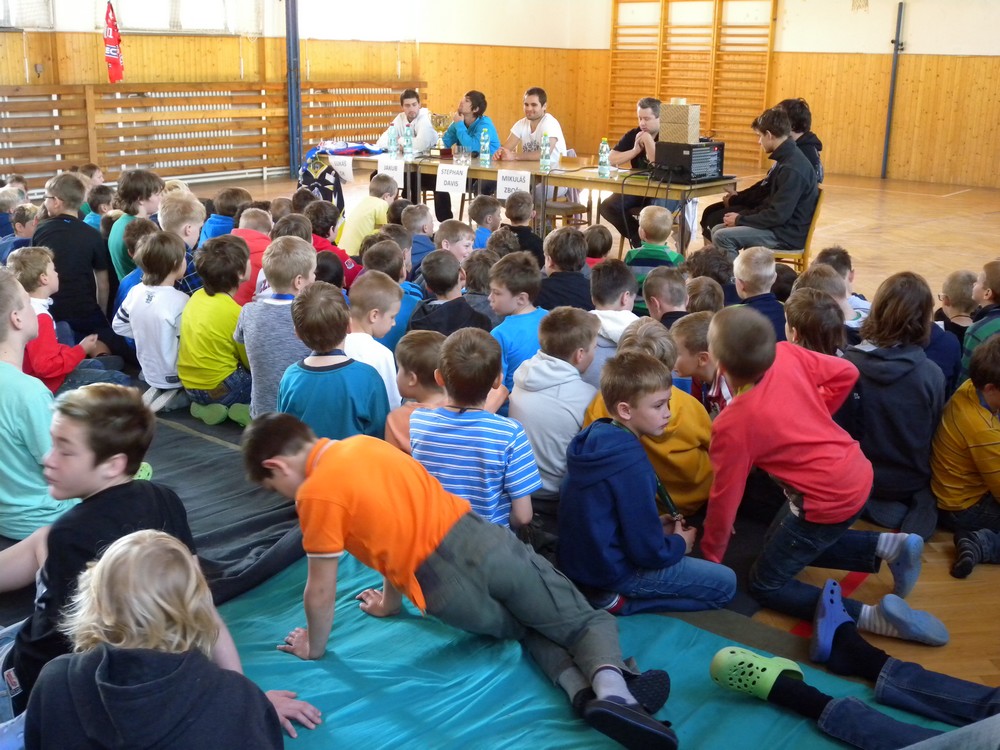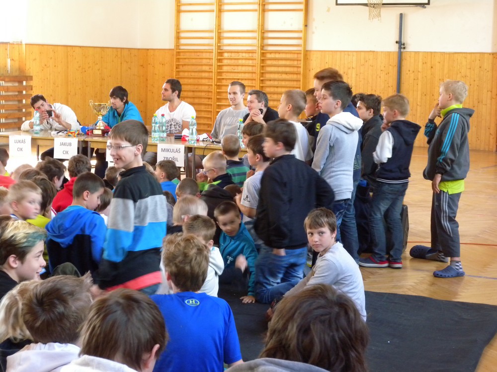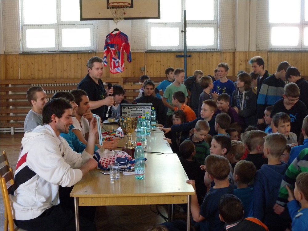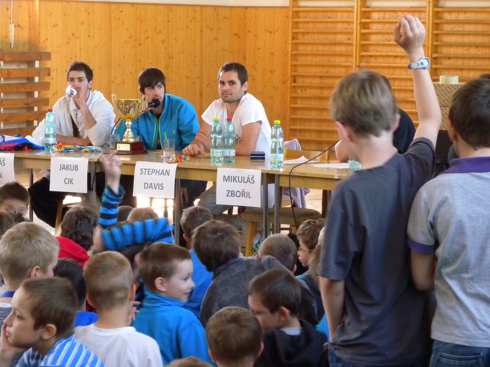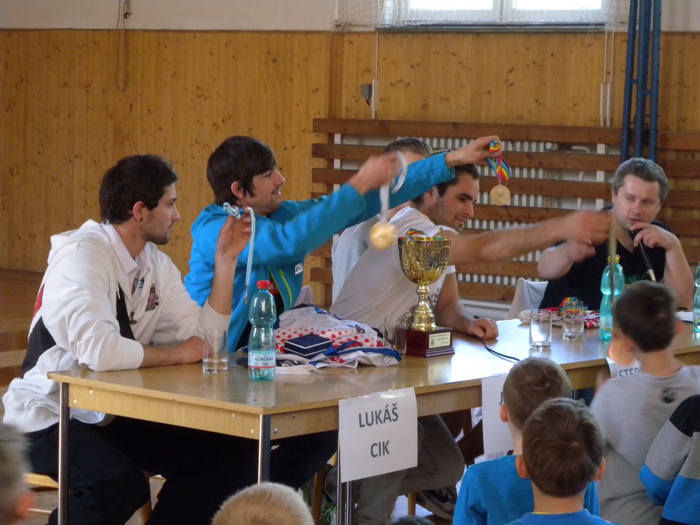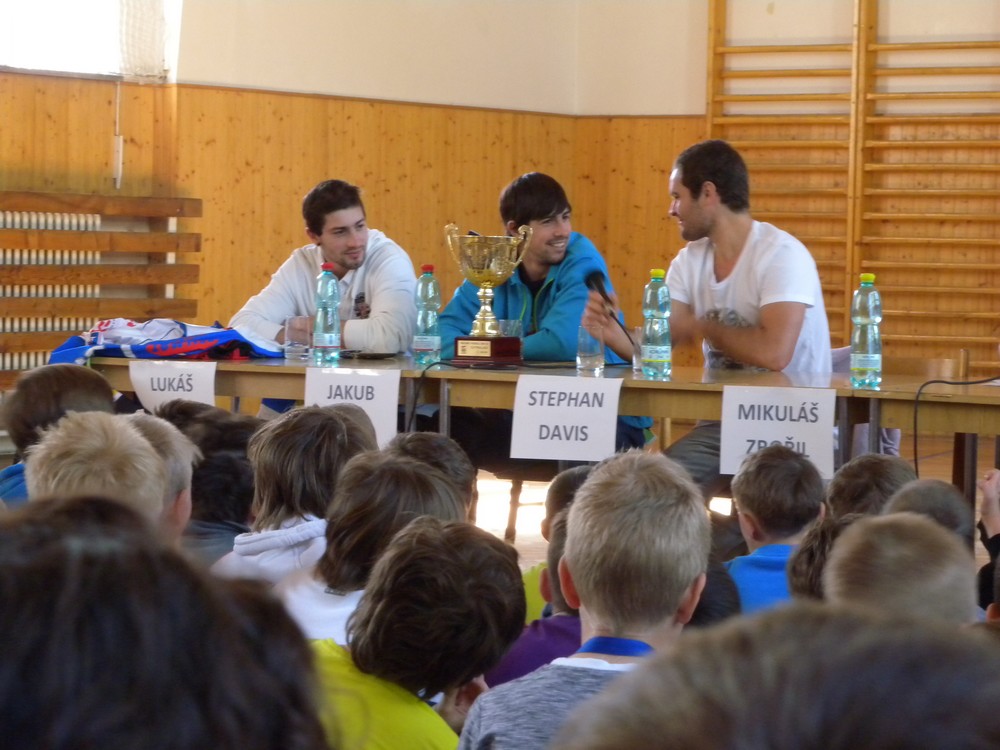 V úterý 6. května se mohli žáci hokejových tříd ZŠ Želatovská seznámit se zákulisím sportu, který získává v posledních letech na popularitě. Je velmi podobný hokeji, kterému se kluci věnují, jen je potřeba vyměnit ostré nože za kolečka. O svých zkušenostech s hraním in line hokeje v lize i v reprezentaci se přišli s žáky podělit držitelé mnoha madailí z mistrovství světa i ze světových her Lukáš Cik, Jakub Cik, Stephan Davis a Mikuláš Zbořil. Otázka stíhala otázku a čas určený na besedu rychle uběhl. Na závěr došlo i na společné focení a žáci si mohli zblízka prohlédnout jak medaile, tak i reprezentační dresy.
