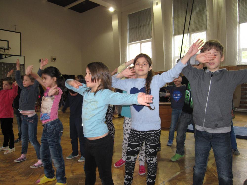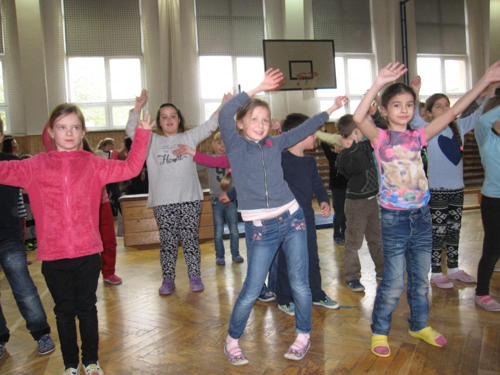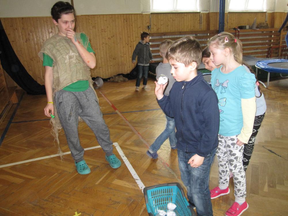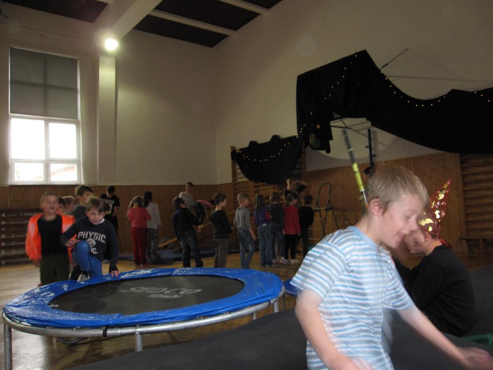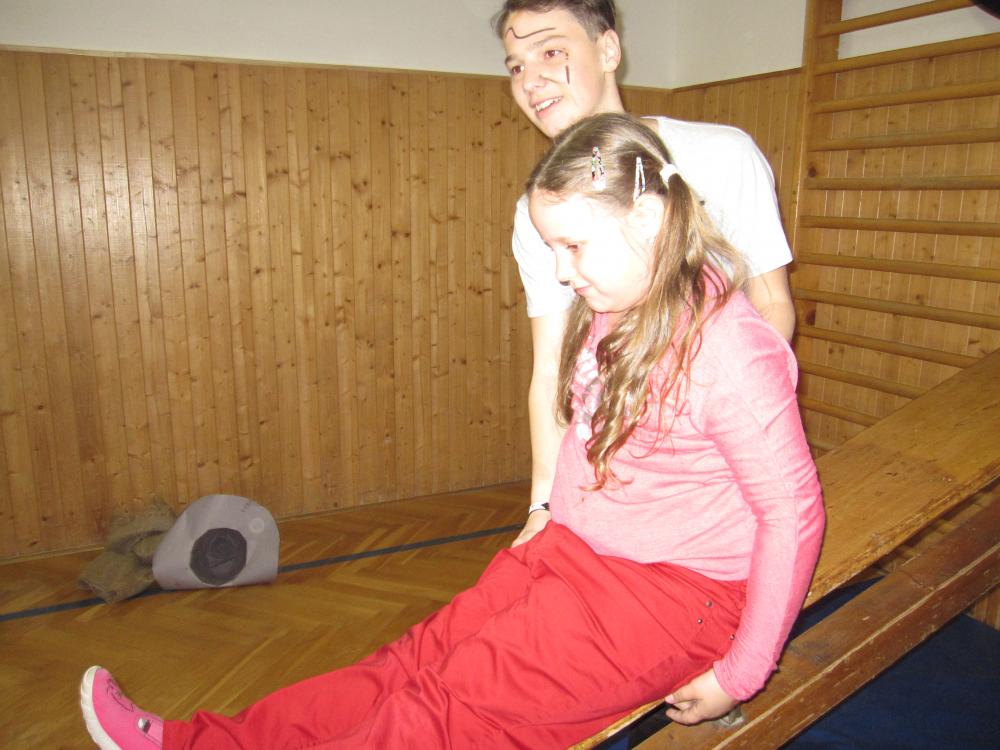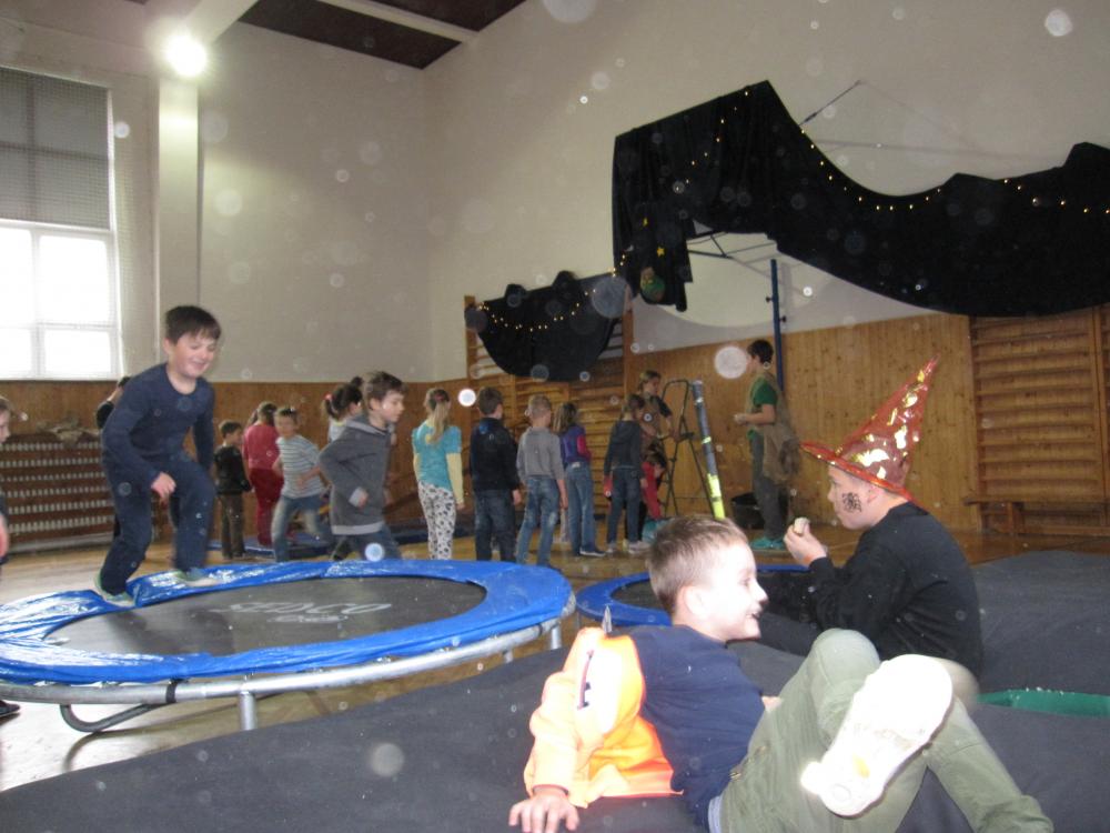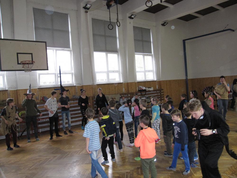 Čarodějnické rejdění 1.B v tělocvičně školy_2017